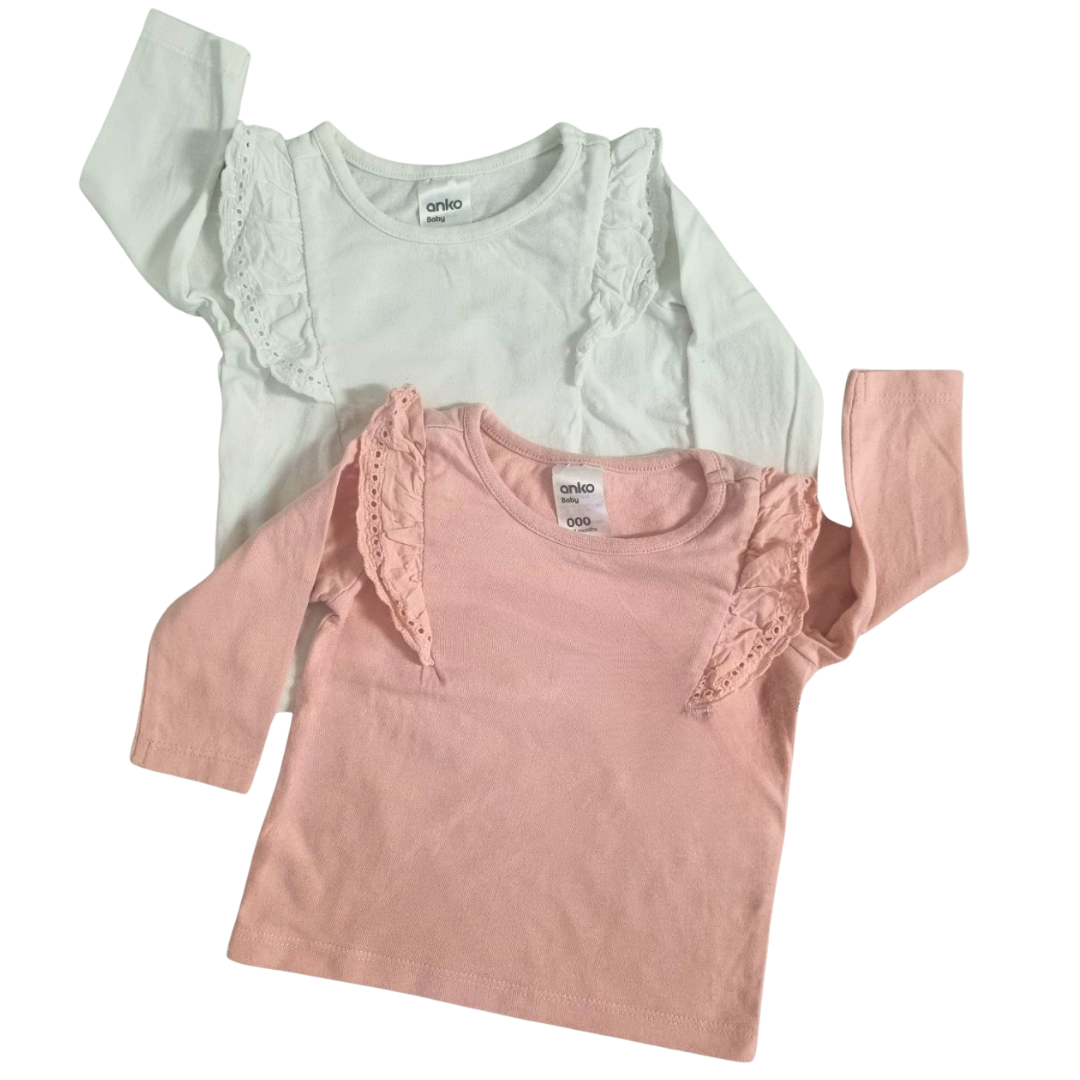 Anko 2pk Long Sleeve Tops - Size: 000 (0-3 Months)